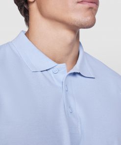 Polo de manga corta. Cuello y ribete de mangas en canalé 1×1 con detalle en relieve. Tapeta con 3 botones. Cubrecosturas reforzado en cuello. Aperturas laterales y bolsillo opcional.